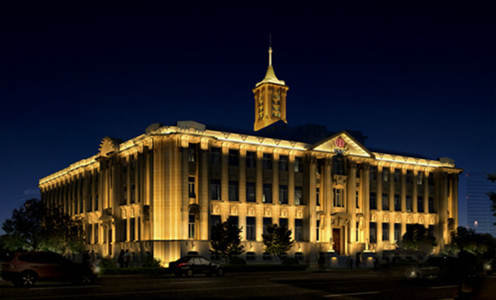 像眾所周知的中國(guó)古代建筑的大屋頂坡型物面在樓體夜景照明的表現(xiàn)上通常是一個(gè)比較難處理的部分,受面比較大的原因是一方面,另外一方面是如何個(gè)立面進(jìn)行一個(gè)有機(jī)的結(jié)合,讓整體照明更具有觀賞性,更為協(xié)調(diào)統(tǒng)一。目前大部分的古代建筑夜景照明項(xiàng)目上都采用了泛光照明的方式,我們?cè)谏弦黄谖恼轮芯吞峒斑^(guò)泛光照明的手法,那這種照明方式能所面臨的問(wèn)題是燈具的安裝位置和照明效果的理想程度。試想一下,如果將燈具安裝在建筑物的表面上,如果是小型的燈具還比較隱藏,可以不被人們所注意,但是如果照明對(duì)象是比較寬深的屋面上,可能就需要用大功率的燈具,一般來(lái)說(shuō)大功率的燈具體量也很大,這不僅會(huì)影響建筑物的景觀完整,也有可能對(duì)建筑結(jié)構(gòu)造成損毀。
