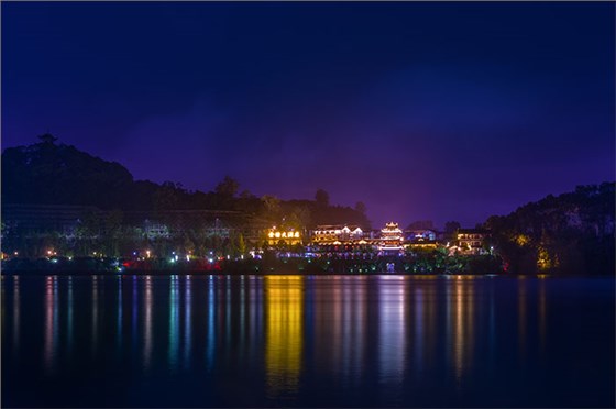 燈光秀目前已然成為了各大古建經(jīng)典、園林景觀或市政亮化項(xiàng)目上常見的一種燈光亮化形式,在四川古城閬中就進(jìn)行了大型燈光秀照明亮化,其表現(xiàn)為隨著夜幕降臨后象征祥瑞之氣的燈光從錦屏山、白塔山觀景臺(tái)射向古城之穴中天樓,中天樓演繹出金木水火土五行變換,中天樓直射出一束亮光,然后射向西山白虎位,白虎之象躍然于眼前,再射向朱雀、青龍、玄武,瞬間“四象”以恢宏之勢(shì)顯示于閬苑群山之中,印證閬山的完美格局。