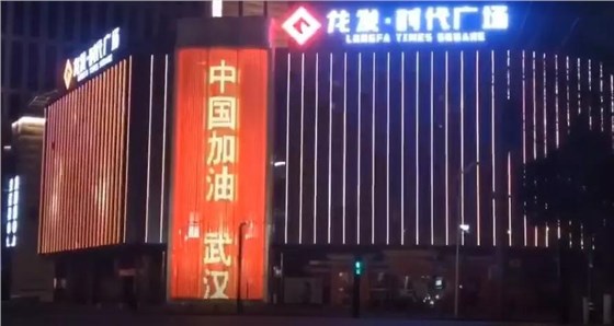 2月10日晚,華燈初上,位于西安高陵的一站式購物中心——龍發(fā)時(shí)代廣場,一組應(yīng)援武漢的標(biāo)語點(diǎn)亮,“武漢加油 中國加油”滾動(dòng)播出,不僅點(diǎn)亮夜空,更點(diǎn)燃西安廣大市民共同戰(zhàn)勝疫情的信心。