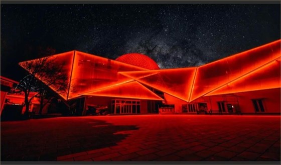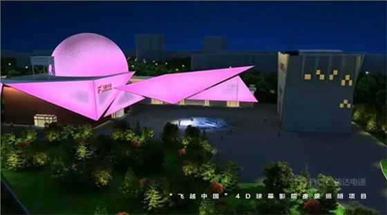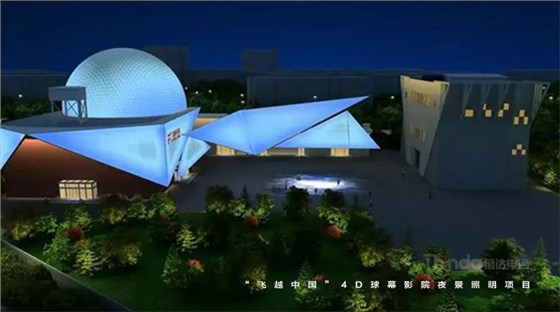 在光色的設計中,信達電通采用皓白、暖黃、科技藍等多種顏色漸變切換的設計手法。燈光重點勾繪外圍建筑輪廓,突出建筑的獨特結構,與球幕影院和廣場地面的投影形成互補和諧的夜景畫面。