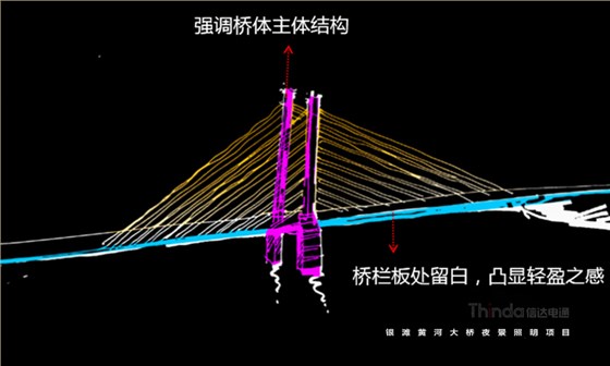 銀灘黃河大橋夜景亮化設(shè)計(jì)中我們以功能性、裝飾性照明為主,同時(shí)也避免高亮度、多光色對行車造成安全隱患。