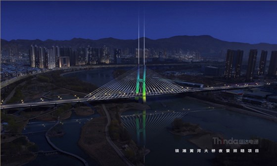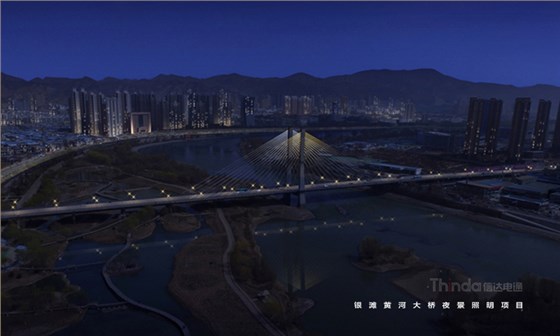 銀灘黃河大橋是蘭州市城市交通樞紐工程,北通蘭州中川國際機(jī)場,南達(dá)蘭州北站。信達(dá)電通在夜景亮化設(shè)計(jì)中以功能性、裝飾性照明為主,同時(shí)也避免高亮度、多光色對行車造成安全隱患。橋身和纜繩的彩光使得大橋成為夜間最獨(dú)特的風(fēng)景。
