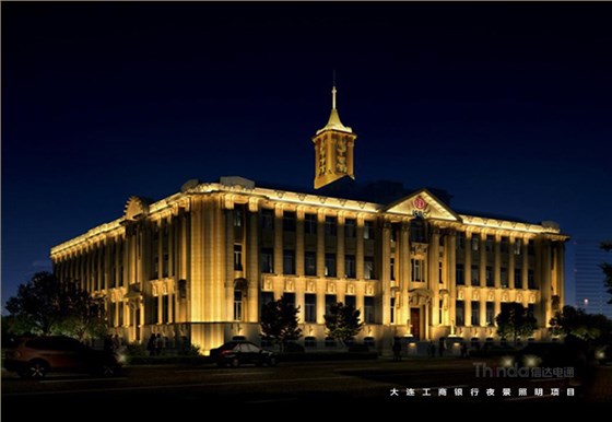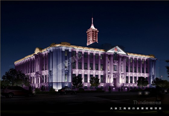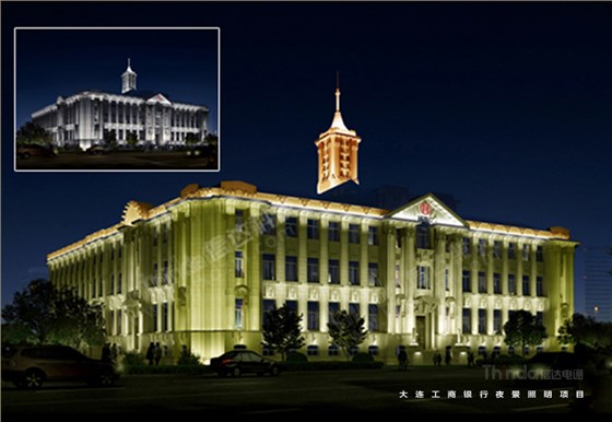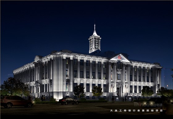 燈具隱藏于建筑構件內部,突顯見光不見燈的設計手法,設計前期對建筑表面做細致的分析,燈具的出光角選擇上也會盡量貼合大連市夜景照明工程中工商銀行的建筑結構。