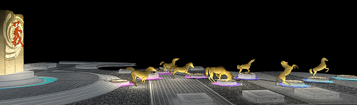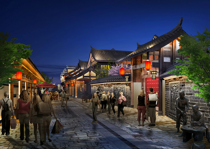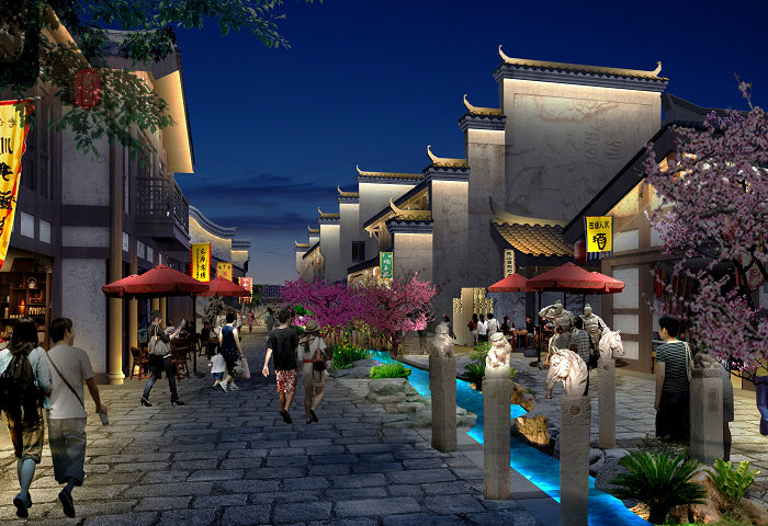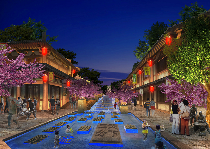 信達(dá)電通根據(jù)忠義街布局、載體特點(diǎn),對整體夜景進(jìn)行規(guī)劃,并對建筑、廣場、雕塑、水體、景觀、道路等載體進(jìn)行具體設(shè)計(jì),打造一場互動體驗(yàn)式的三國主題度假休閑之旅。