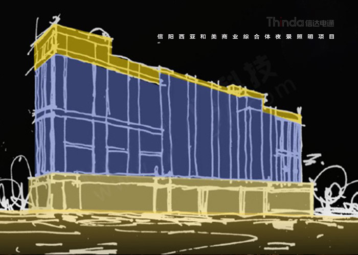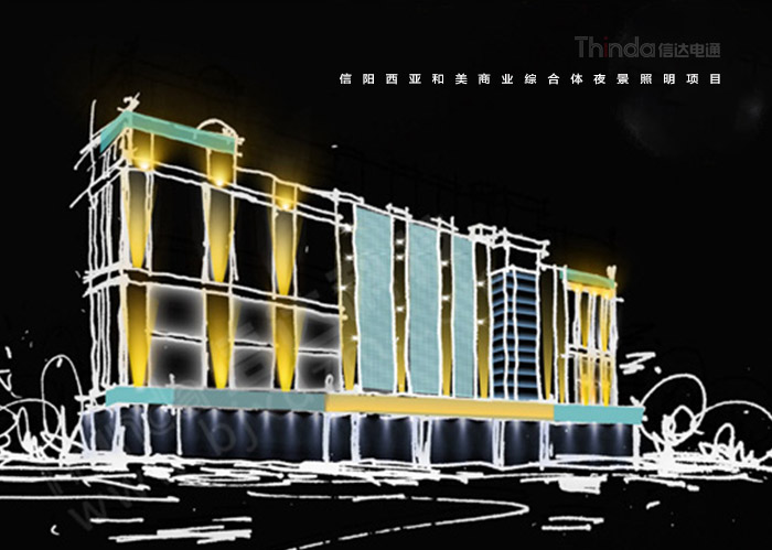 西亞和美商業(yè)廣場地處于河南省信陽市,位于東方紅大道、南臨北京南路、東臨統(tǒng)一街,周邊有鳳凰新世界、東方京城、軸線之廊,位置優(yōu)越,交通便利。這里信陽人民平時(shí)生活娛樂與購物餐飲的地方,也是IGA中國區(qū)優(yōu)秀零售商。目前商業(yè)廣場夜景照明已經(jīng)跟不上整體的商業(yè)需求,急需進(jìn)行照明設(shè)計(jì)施工改造升級,為此信陽西亞和美業(yè)主聯(lián)系到信達(dá)電通,雙方根據(jù)本案開展照明設(shè)計(jì)施工合作。
